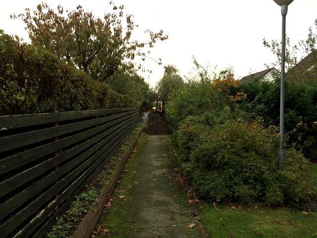 NCC börjar gräva: Gång- och cykelstigen mellan Angantyrs gränd och Torkel Höges gränd Gång- och cykelvägen mellan Angantyrs gränd och husen på Nordmannavägen. |