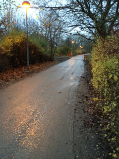 Lagret av lera har städats bort från gång- och cykelstigarna: Mellan Angantyrs gränd och Ragnar Lodbroks gränd |