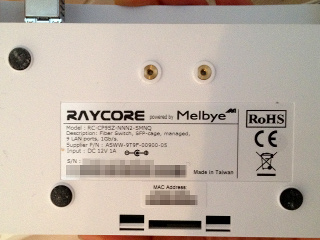 Eltel monterar den aktiva utrustningen som sitter inne i husen. Dosan till höger, på väggen, är där fibern utifrån kommer in. Till denna kopplas konvertern som här ligger på golvet. Det är till den man ansluter sin egen utrustning. Så här ser baksidan av konvertern ut. Konvertern är en Raycore RC-CP9SZ-NNN2-SMNQ. Det är alltså en managerad 9-portars 10/100/1000 Mb/s L2/L3 switch, med en SFP-port (som fibern kopplas in i). För internetanslutningen är det högst sannolikt så att en av (RJ-45-)portarna i denna är den man antingen kopplar in sin dator direkt alternativt kopplar in en egen router i för att köra flera anslutna enheter med NAT, för IPv4. (Samt att en annan av portarna används för att ansluta telefoniutrustning, och en tredje för att ansluta TV-utrustning.) |