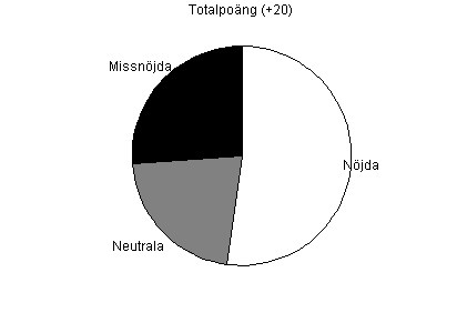 | | Missnöjda (<0) | 6 | 26 % | | Neutrala (0) | 5 | 22 % | | Nöjda (>0) | 12 | 52 % |